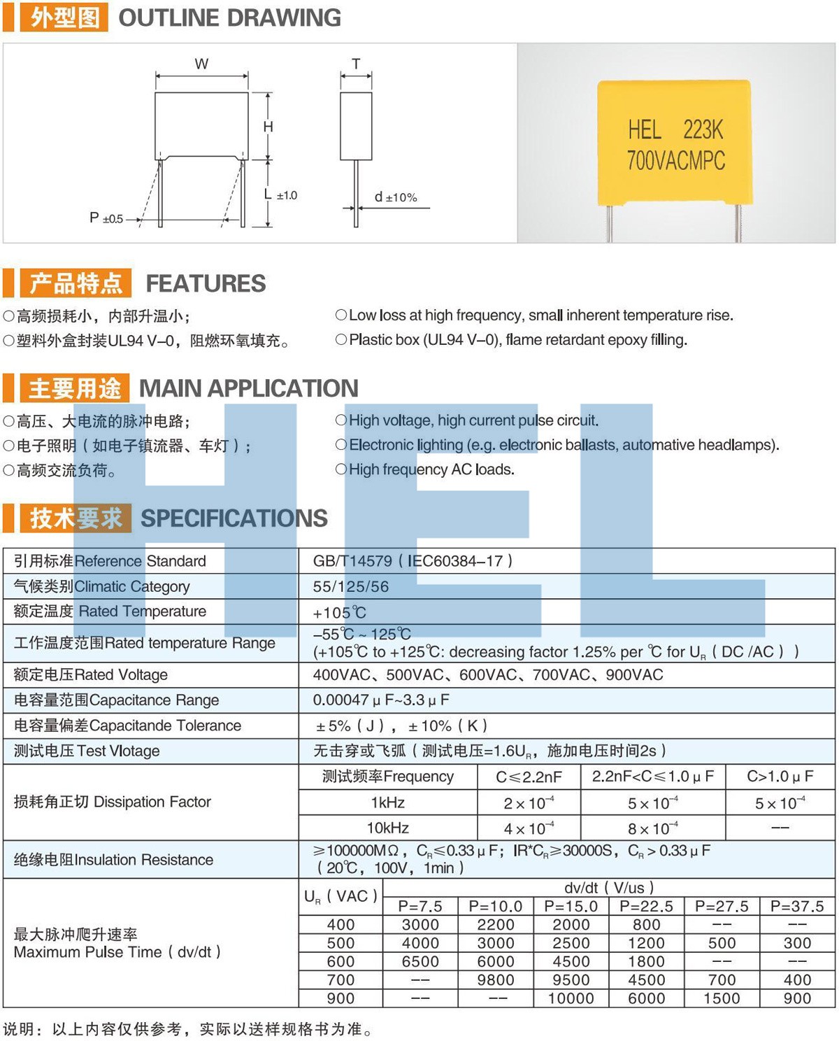 MPC 125℃塑料外盒金屬化聚丙烯薄膜電容器(MKP23)